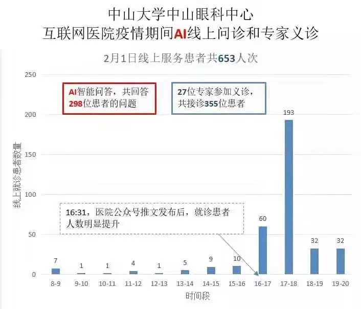 眼科医生志愿者依托互联网医院开展在线义诊!正月初一,中山大学中山眼科中心“互联网AI诊疗服务”上线,青年眼科医生积极响应,465名志愿者为患者提供“免费看诊”服务!
