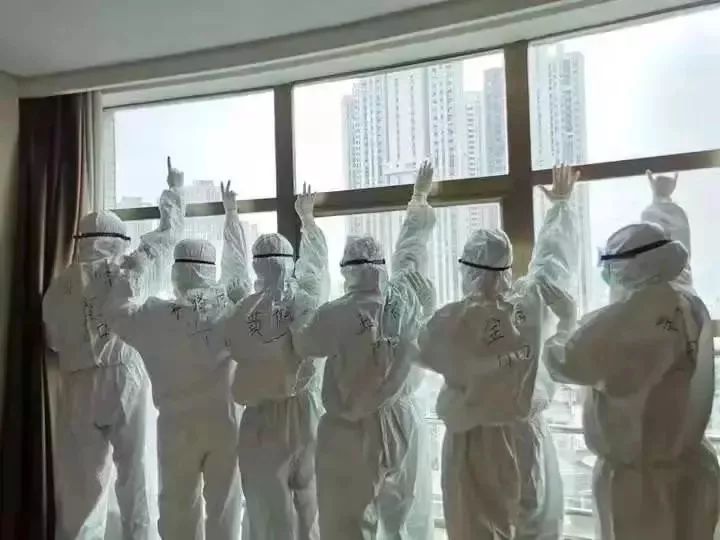 嘉兴市第一医院主管护师王荣从武汉一线发来了几张照片,让人泪目。为了方便辨认,大家在防护服后标上了自己的名字。他们还写上了“嘉兴一院加油”的字样!