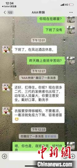 夫妻俩通过微信相互问候、打气、鼓励 受访者供图 摄