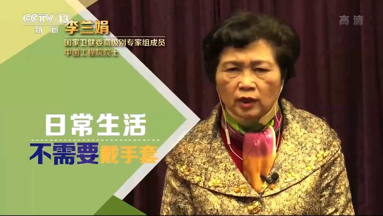 李兰娟:日常生活不需要戴手套;只有直接接触污染物的时候才需要戴手套。