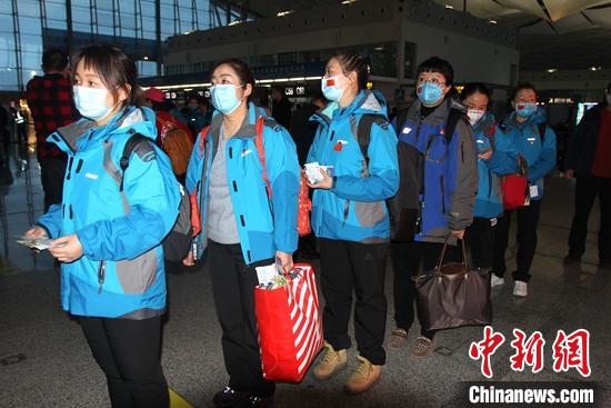 6日,新疆第三批支援湖北医疗队进入机场。 陶拴科 摄