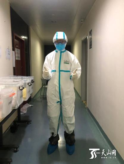 在病区,刘雪梅每天至少穿6个小时防护服。