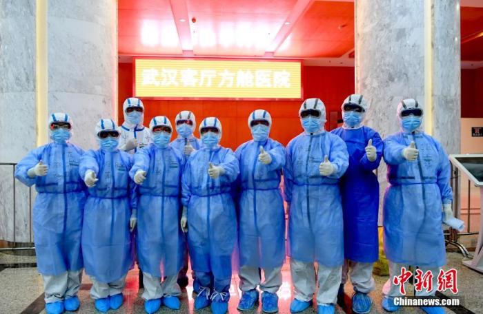 资料图:武汉“方舱医院”医护人员在进入病区前加油鼓劲。 安源 摄
