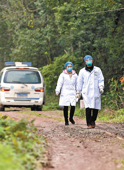 2月7日,重庆市九龙坡区陶家镇卫生院的医护工作者前往村民家中,排查疫情。