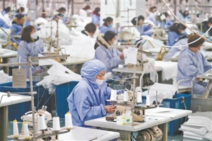 近日,为缓解疫情防控物资紧缺状况,江苏省无锡市红豆集团主动调整产能,通过快速筹备,将服装生产线转变为防疫工作需要的防护服生产线,开足马力生产。
