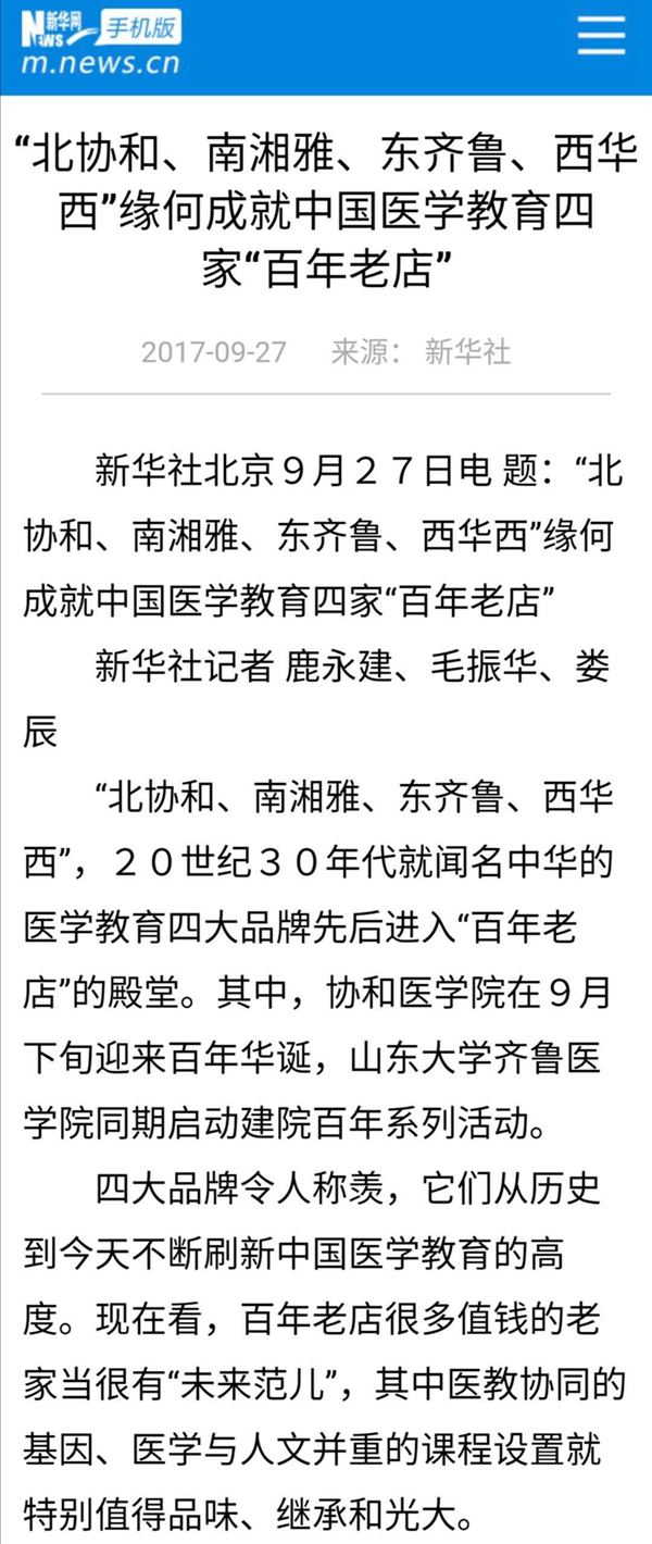 新华社有篇报道把它们称为中国医学教育四家“百年老店”,是20世纪30年代就闻名中华的医学教育四大品牌。它们从历史到今天不断刷新中国医学教育的高度。↓↓↓