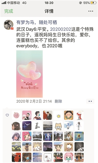 苏州市立医院重症监护室护士霍任超因为援助武汉无法陪伴家人,他在朋友圈里为亲人庆生。