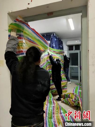 三峡大学教职工用防水布封闭学生物品 余纯 摄
