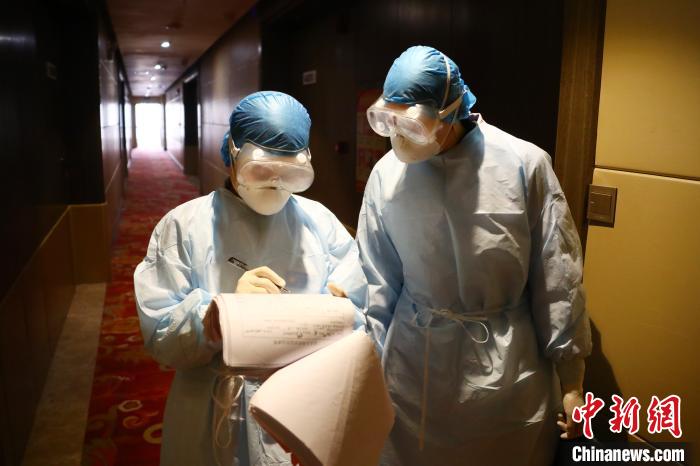 图为在南昌市新建区一隔离观察点,医护人员正在询问老人身体和心理状况。(资料图) 刘占昆 摄