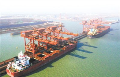 近日,在江苏省太仓港武港码头,卸船机正在接卸进口货物。计海新摄(人民图片)