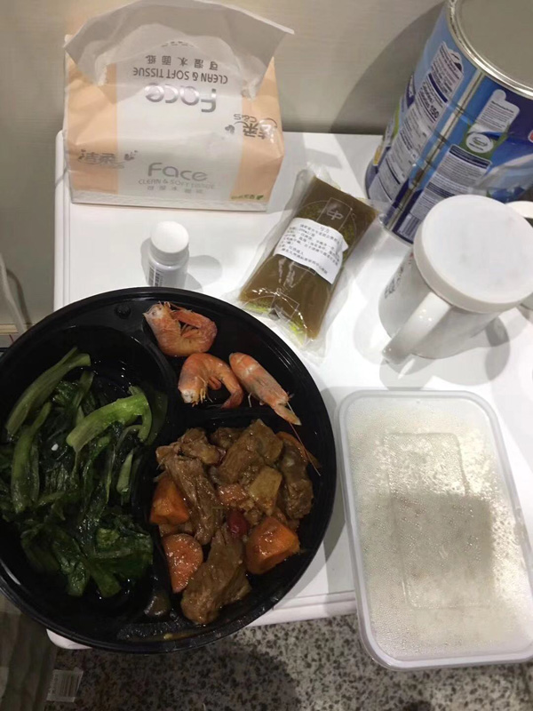 我现在每天会读书,录一些小视频发在网上,定时打卡一日三餐,向大家展示着最真实的“方舱生活”。虽然食物不够丰盛,条件比较艰苦,但多一份理解,就多一份感恩。