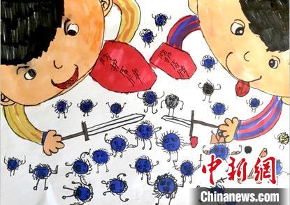 《打败小冠》孙一伊 7岁最近的冠状病毒影响了我们的生活,由于疫情,我们暂时没法去学校上课了,只能在家里自己学习。希望大家一起努力早日战胜冠状病毒,加油! 中国宋庆龄青少年科技文化交流中心供图