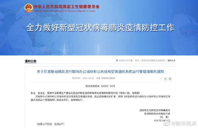 【国务院联防联控机制:办公场所和公共场所发现疑似、确诊新冠肺炎病例时应停用空调通风系统】国务院联防联控机制12日印发《新冠肺炎流行期间办公场所和公共场所空调通风系统运行管理指南》,当场所发现疑似、确诊新型冠状病毒感染的肺炎病例,或集中空调通风系统的类型、供风范围等情况不清楚,应当停止使用空调通风系统。(记者温竞华、田晓航)