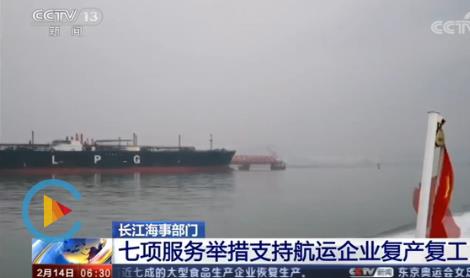 记者昨天(13日)从交通运输部海事局了解到,长江海事部门推出七项服务举措,通过继续加大运输疫情防控、生产生活等重点物资船舶绿色通道服务;对复工和新建重点水工作业项目许可即申即办;加速办理网上申办的海事业务,免费邮寄相关证书证件等,保障长江干线民生和疫情防控重点物资运输,全力支持航运企业复产复工。