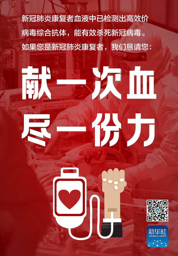张定宇院长在发布会上发出呼吁后,社会广泛关注。13日晚,中国生物技术股份有限公司、武汉市血液中心也联合向新冠肺炎康复者发出献血倡议书,并在湖北省人民医院开放爱心献血屋。目前,已有不少康复者来电咨询。(记者 李劲峰 侯文坤)