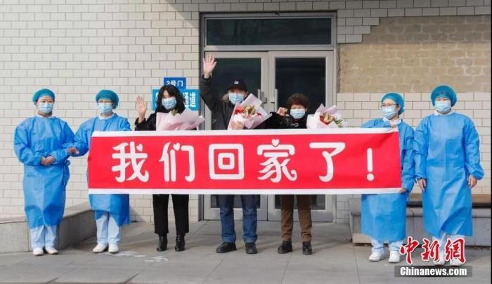 图为出院者与医护人员合影。中新社记者 吕品 摄