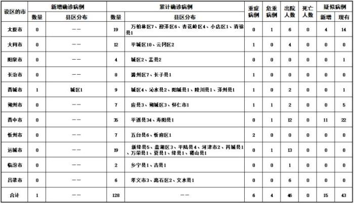 备注:根据国家卫生健康委要求,按病例确诊时医院所在县区统计(图片来源:山西省卫健委网站)