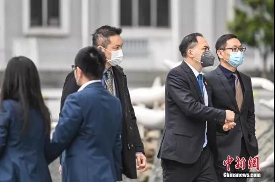 资料图:2月10日,复工首日的广州,民众戴口罩经过珠江新城中央商务区。中新社记者 陈骥旻 摄