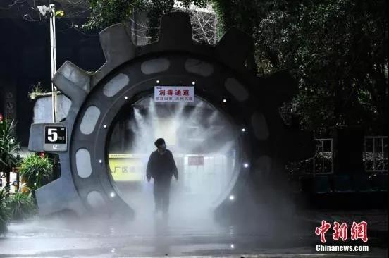 资料图:重庆企业安装自动喷雾消毒装置,为进出企业的员工进行全身消毒杀菌。中新社记者 陈超 摄