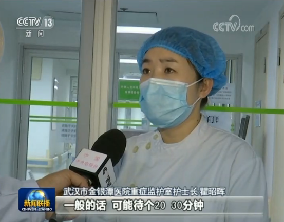 武汉市金银潭医院重症监护室护士长 瞿昭晖:在ICU(重症监护室)里面,一般的话,在里面待20到30分钟,你们就会觉得各种胸闷不适,但是我的护士至少是5到6个小时,最长的会待10到12个小时,所以我们都是女汉子。