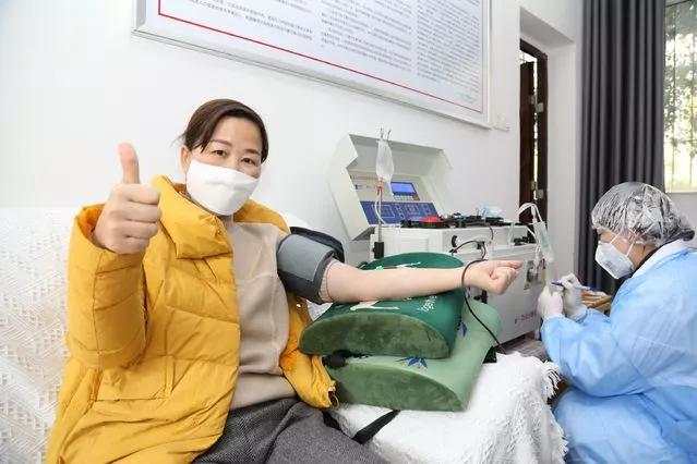 2月5日,湖北省武汉市江夏区中医医院的吴芬和同院的7名新冠肺炎康复的医务人员共捐献血浆2600毫升,成为该院第一批捐献血浆的新冠肺炎治愈患者。