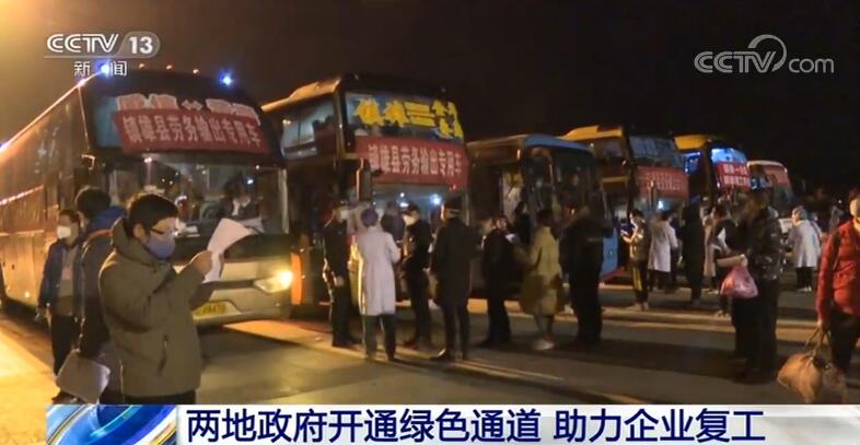 浙江永康和云南镇雄两地政府为企业返厂员工开通绿色通道,助力企业复工复产。经过1400多公里的长途跋涉,17日凌晨,从云南镇雄县出发的首批返岗大巴车顺利平安地抵达金华永康。在返岗专车上,都有云南镇雄当地的干部、医生一路陪伴。