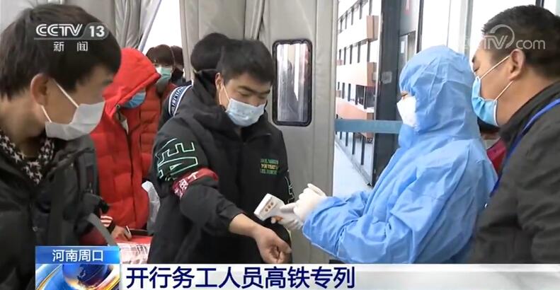 此外,河南省也有一批务工人员乘坐高铁列车从周口市西华站出发前往杭州东站。为保障务工专列顺利开行,避免疫情传播,车站和列车工作人员在加强公共区域消毒通风的基础上,增加体温监测点和安检通道,开辟务工绿色通道和专用候车区,确保务工人员快速进站乘车。