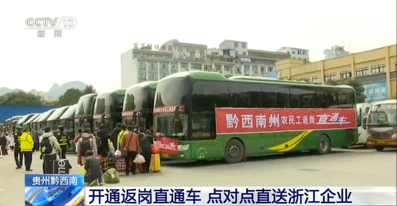 这两天,贵州省黔西南州人社部门在摸清外出务工人员就业意愿、收集岗位信息的基础上,加强与务工地人社部门、企业、疫情防控部门联动,以“返岗直通车”直达务工地的方式,开展劳务输出。2月17日下午,共有460名务工人员在黔西南州贞丰县统一乘车,前往浙江省东阳市。此次行动共安排长途客车15辆,由东阳市人社部门和公安部门带队返程。