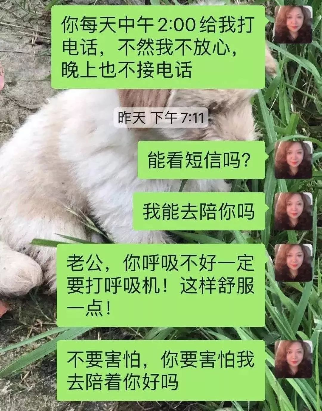 刘智明院长住院治疗时,他的妻子——武汉市第三医院光谷院区ICU护士长蔡利萍发微信为他加油鼓劲,妻子问他:“需要我去照顾你吗?”刘智明回答:“不要。”
