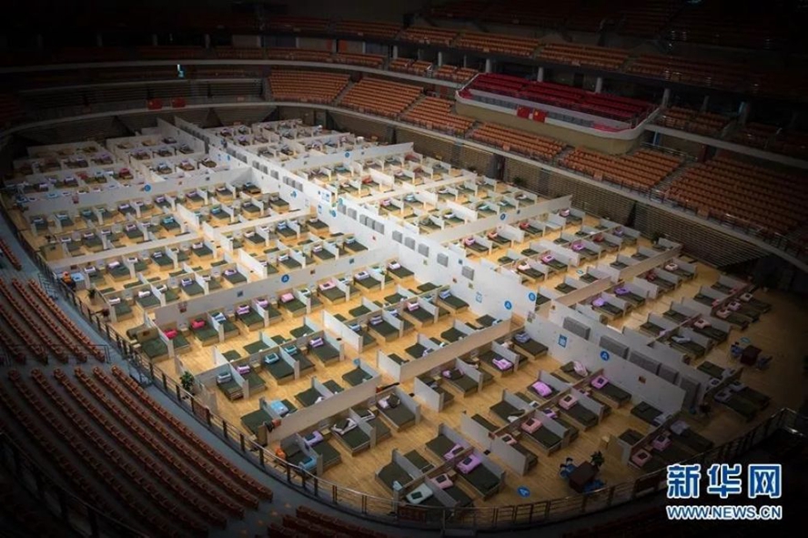 2月12日拍摄的武汉体育中心方舱医院(图源:新华社)