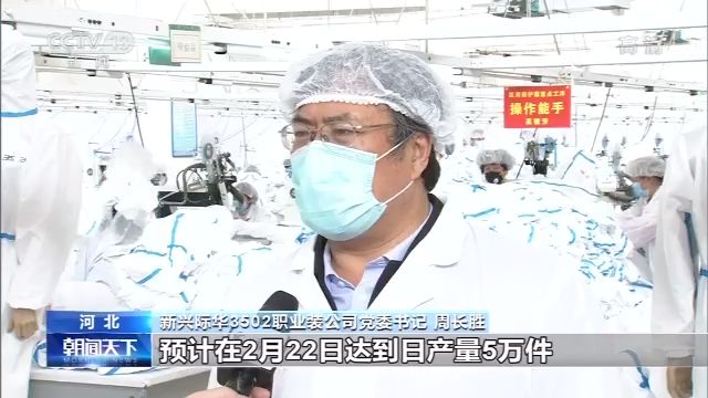 新兴际华3502职业装公司党委书记周长胜:目前的日产量达到了4.4万件,预计在2月22日达到日产量5万件。
