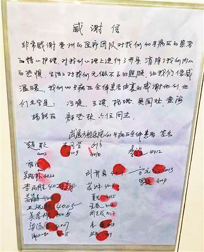 武展方舱医院40号病区患者,向医护人员联名送上感谢信。