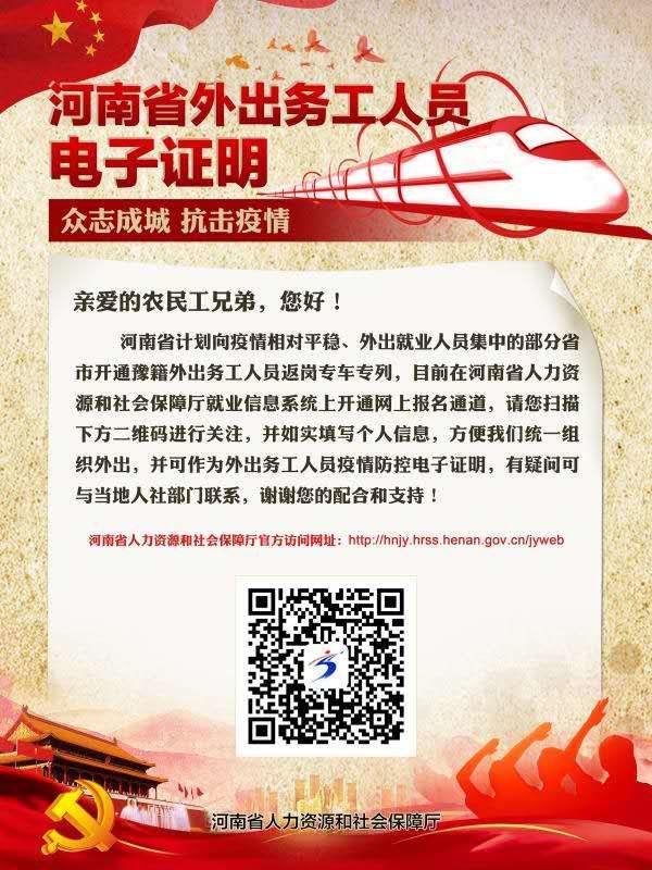 大河网讯(记者 刘晓明)2月22日,大河网记者从河南省人力资源和社会保障厅获悉,河南省计划向疫情相对平稳、河南务工人员集中的部分省市开通豫籍外出务工人员返岗专车专列,以方便外出务工人员顺利返岗复工。