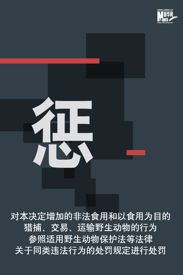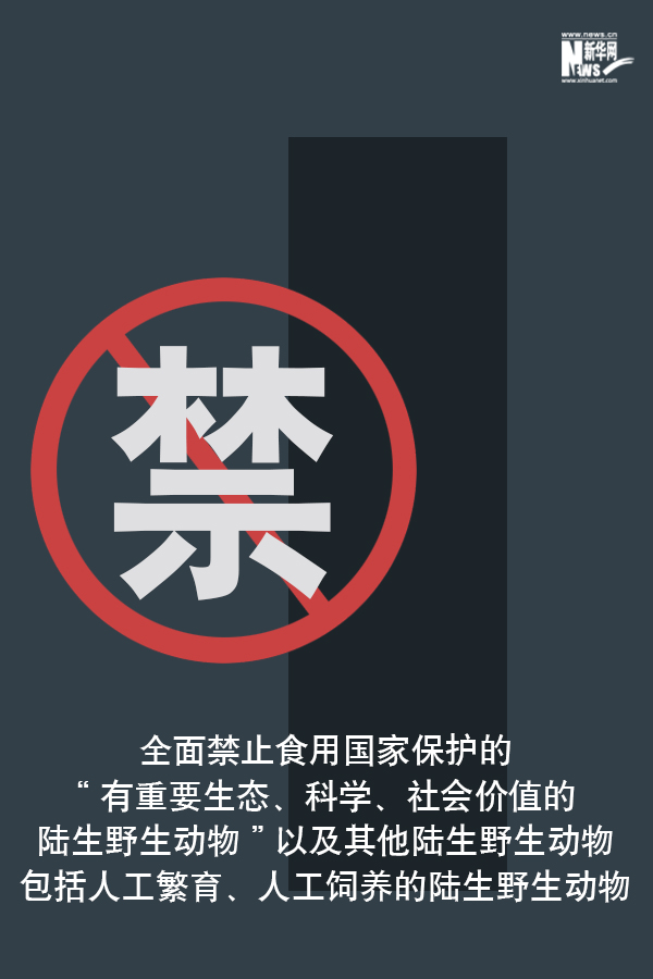 2月24日,十三届全国人大常委会第十六次会议表决通过关于全面禁止非法野生动物交易、革除滥食野生动物陋习、切实保障人民群众生命健康安全的决定。