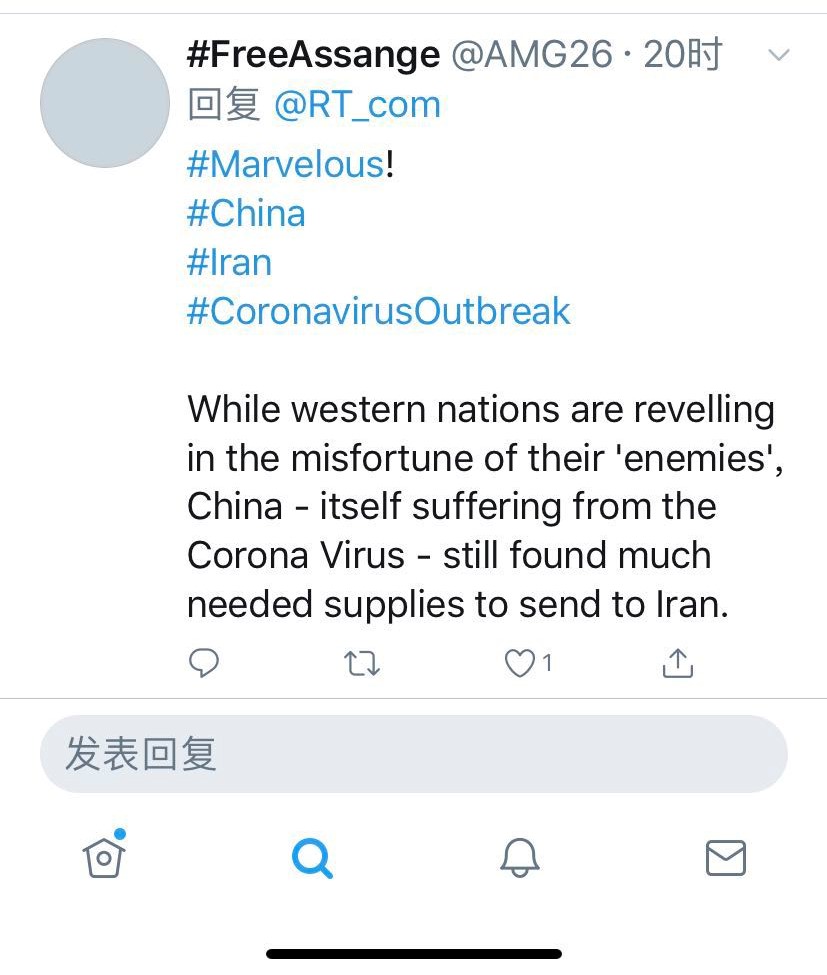 一名网友写道:“当某些西方国家对伊朗幸灾乐祸时,中国——虽然深受疫情影响,仍让向伊朗提供了急需的援助。”
