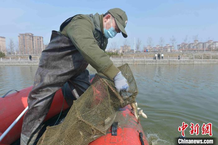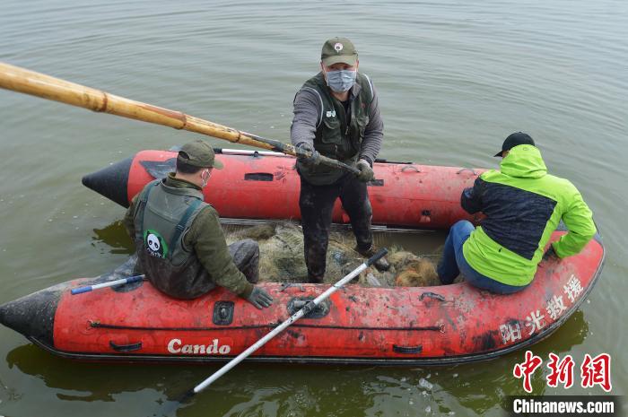志愿者在候鸟栖息地清理地笼网,保障为以鱼为生的潜鸭类候鸟觅食安全。 王海滨 摄