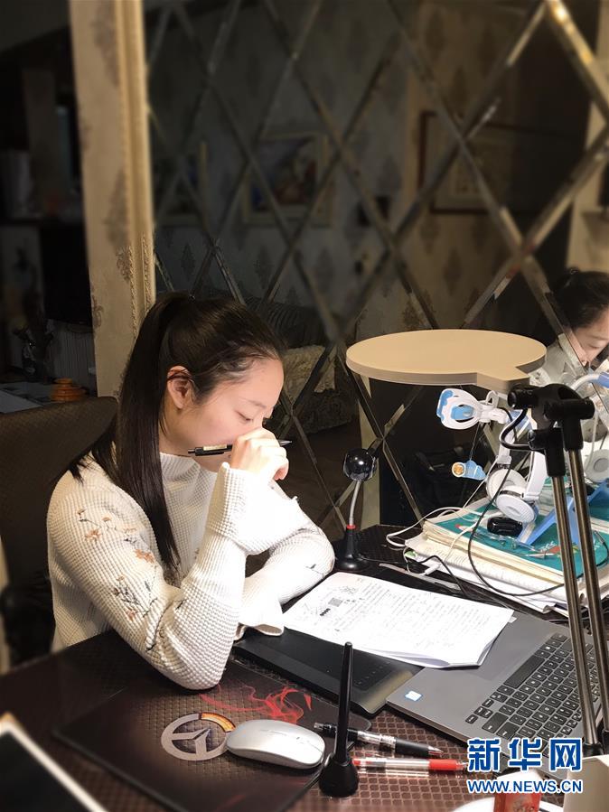 3月9日,武钢三中高三七班学生万谦在家学习。 新华社发