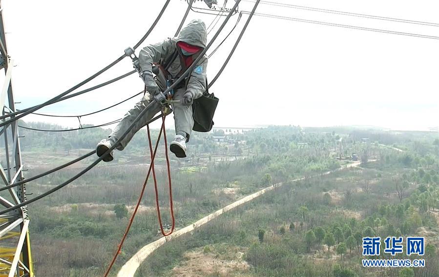 3月4日,国网湖北电力检修公司检修员胡洪炜在检修线路。 新华社发