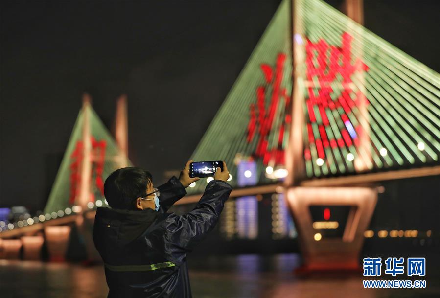 5分钟后,2公里长、100米高的斜拉桥绳索上亮起了全世界都熟知的四个红色大字:武汉必胜。