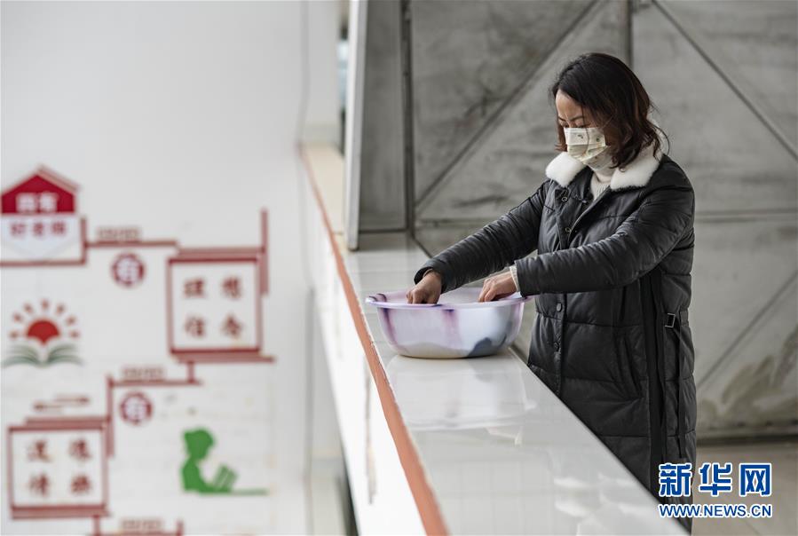 3月13日,全国人大代表、云南省昭通市鲁甸县文屏镇中心小学校长甄兰芳在学校里清洁卫生,为复课工作做准备。新华社记者 江文耀 摄