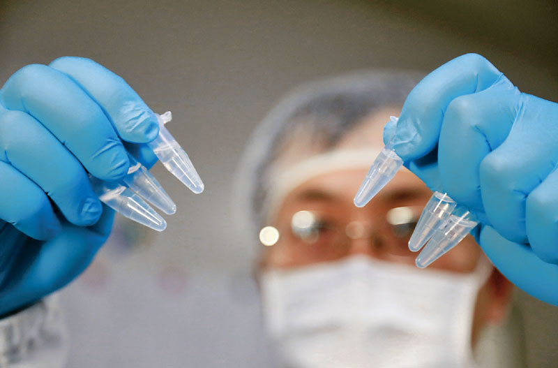 同济大学附属东方医院转化医学平台与斯微(上海)生物科技有限公司合作,快速推动新型冠状病毒mRNA疫苗研发。图为2020年2月1日科研人员展示新型冠状病毒mRNA疫苗研发实验过程。 中新社记者 汤彦俊/摄