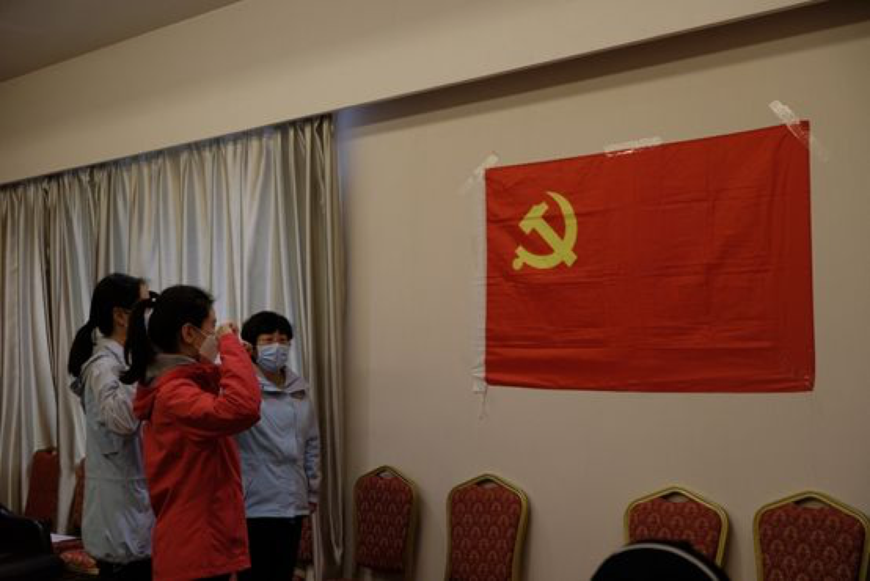 2月25日晚7时,北大第一医院援鄂医疗队临时党支部在驻地宾馆举行了一次庄重的党员发展会。