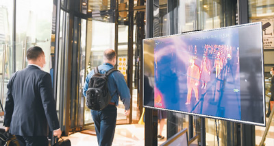 不“挨枪”也能测体温吗?在北京某单位入口,记者看到这样一幕:在红外热成像测温仪“火眼金睛”的“注视”下,员工们无需排队“鱼贯而入”,更不用在额头、手腕处挨上“一枪”,只需像往常一样步入办公楼,每个人的体温“彩绘”就直接呈现在电脑屏幕上。