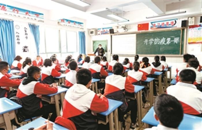 图为3月22日,李银尧所在的班级在上开学防疫第一课。新华社发(陈欣波 摄)