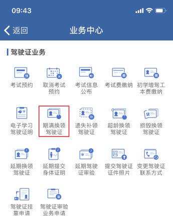 ▲ 点击“期满换领驾驶证”