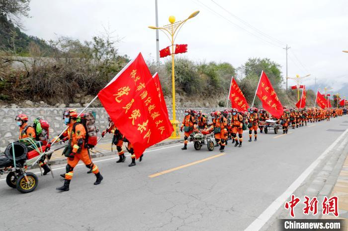 3月30日,西藏自治区消防救援总队在拉萨召开该总队联席会,自然资源、水利、交通运输、气象、地震等相关单位负责人参会,并为建立健全西藏联勤联防应急救援体系交流发言。资料图:西藏消防救援总队救援队伍前往救援。 西藏消防救援总队供图