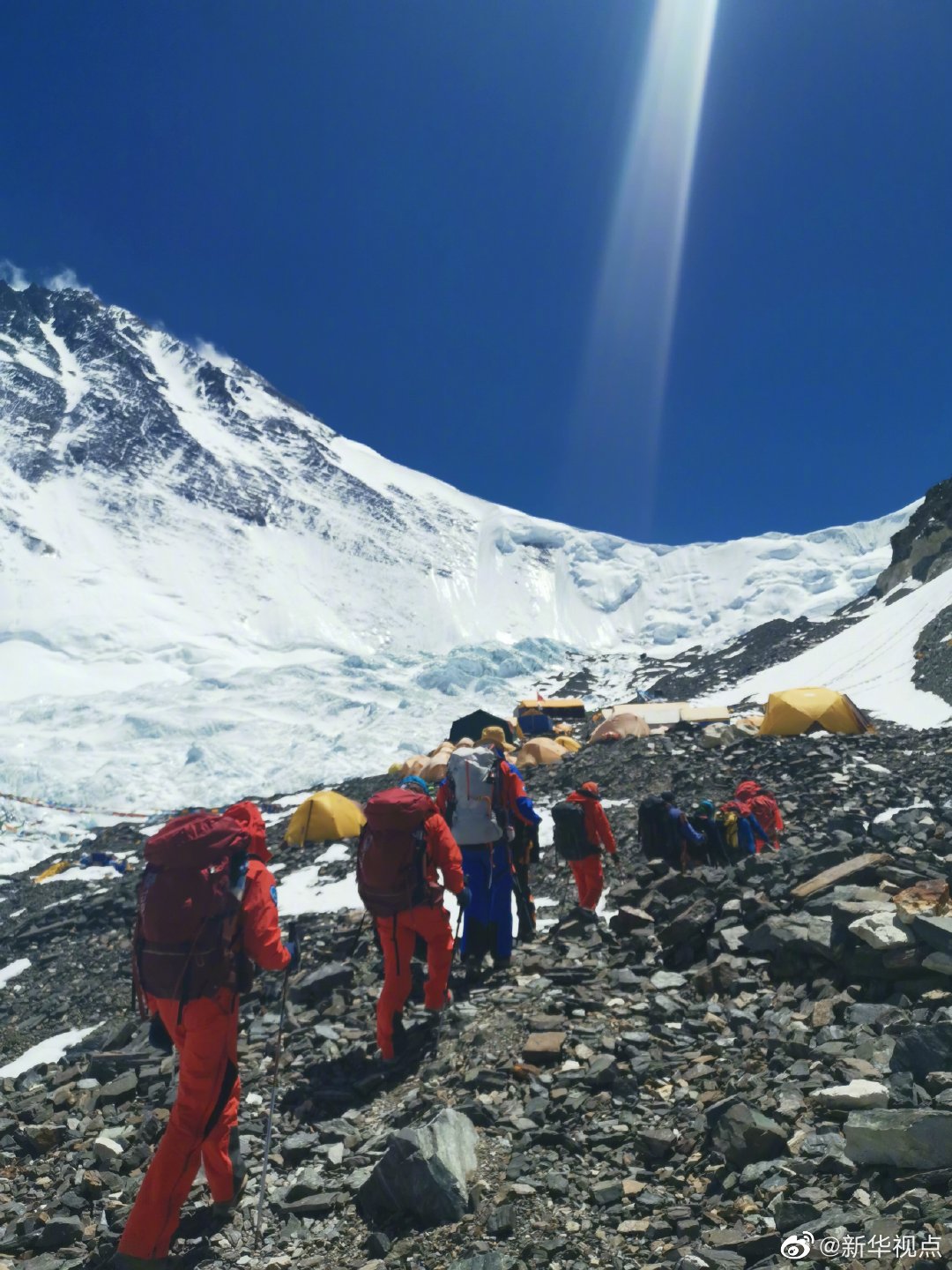 记者17日从2020珠峰高程测量登山队了解到,测量登山队于当日11时左右从海拔5800米的过渡营地出发,近5个小时后,到达海拔6500米的前进营地,队员状态良好。据2020珠峰高程测量登山队队长次落介绍,5月18日,队伍将在前进营地进行休整,整理高山营地所需物资。目前前进营地有阵风,风力有渐大的趋势。(记者魏玉坤、武思宇、王沁鸥;摄影:次落)