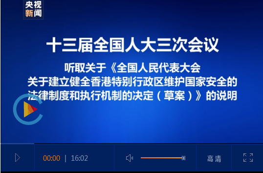 独家视频丨关于《全国人民代表大会关于建立健全香港特别行政区维护国家安全的法律制度和执行机制的决定(草案)》的说明