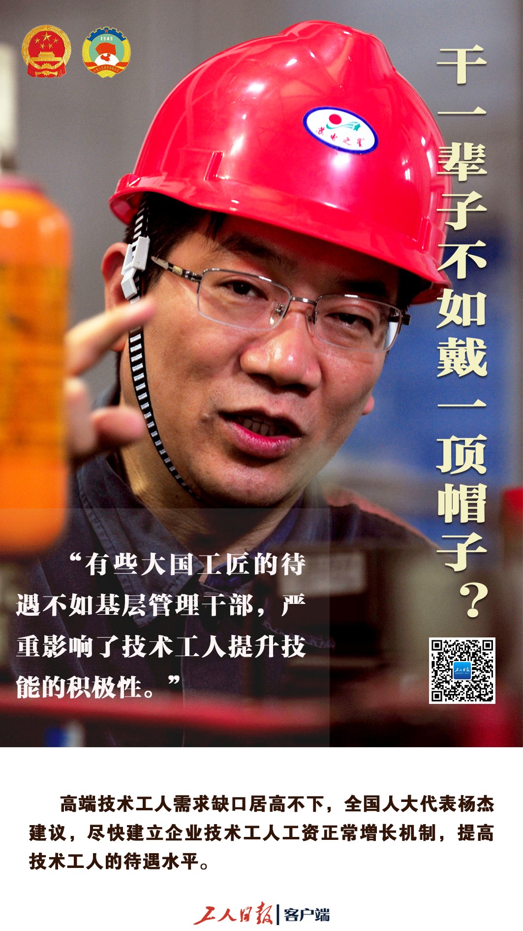 “有些大国工匠的待遇不如基层管理干部,这意味着干一辈子不如戴一顶帽子,严重影响了技术工人提升技能的积极性。”