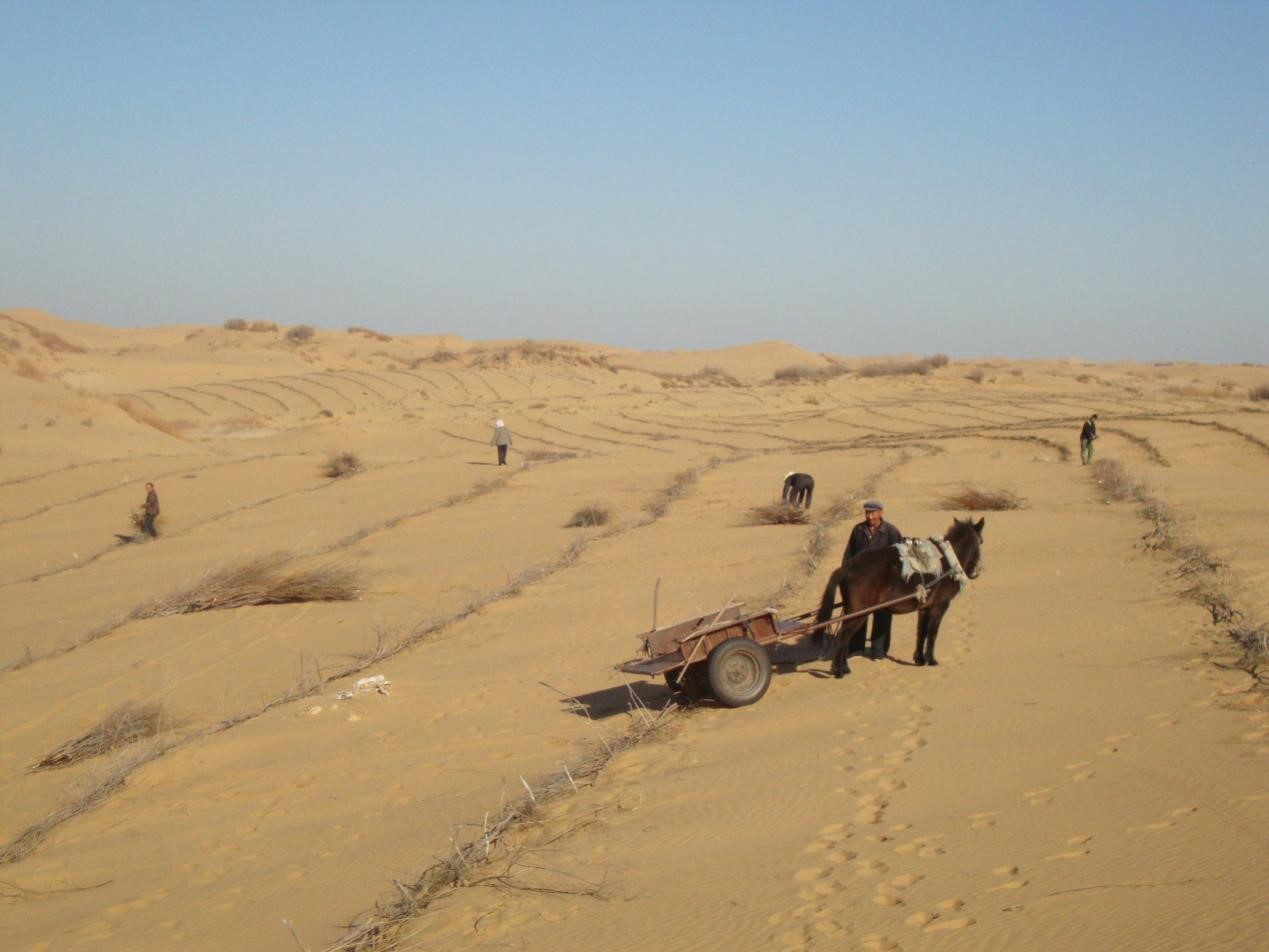 生活在这片不毛之地的人们与荒漠化做斗争,“向沙地要草、要水、要树”可以追溯到上世纪五六十年代。治沙60载,从“前挡后拉”种植沙蒿,到飞播造林铺开绿毯,再到今天,鄂尔多斯境内毛乌素沙地70%得到有效治理,淳朴勤劳的内蒙古农牧民在黄沙中踩下坚实的绿色脚印。